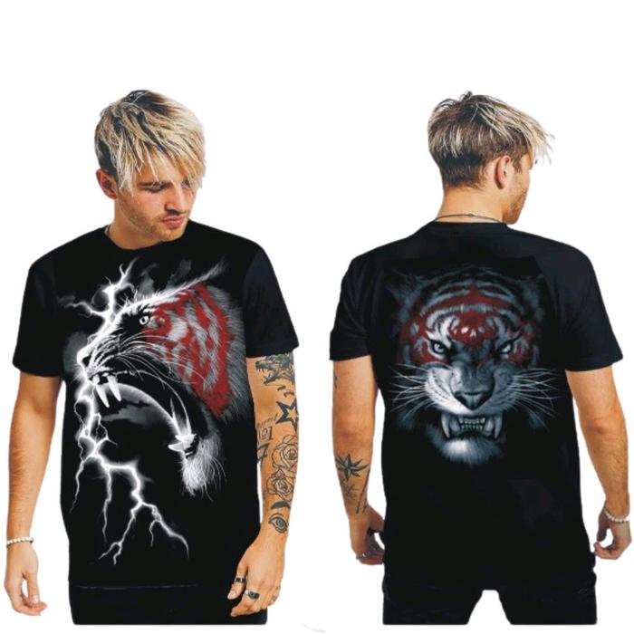 Kaos Cowok Lengan Pendek - MACAN PETIR - Oblong Pria Dewasa - Kaos Distro - Tshirt - Baju Hitam Sablon Lembut Keren hed