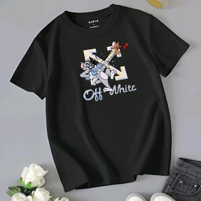 tshirt pria off white black cotton combed 24s super tebal&halus,kaos oblong cowok unisex. Distro Wanita Baju Katun Keren
