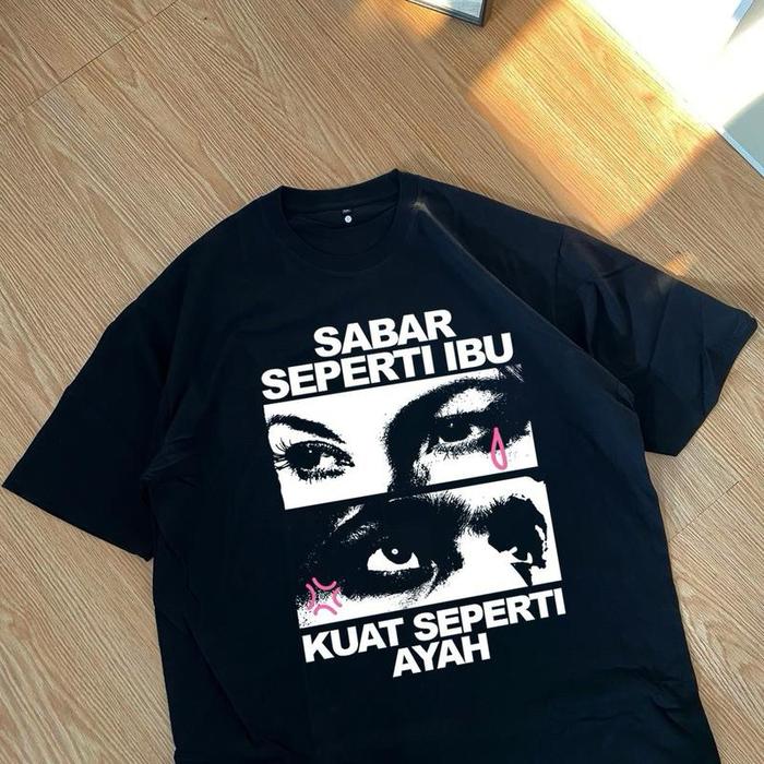 KAOS SABAR SEPERTI IBU KUAT SEPERTI AYAH KAOS DISTRO KATA ~FREE STICKER-KAOS MURAH-KAOS COTTON COMBAD 30S-SABLON DTF