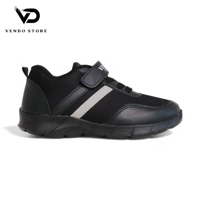 ”VENDO SEPATU ANAK SEKOLAH CEWE/COWO USIA 4-12 TH” Fashion hak rendah (1-3 cm) black - Hitam polos strip putih 28
