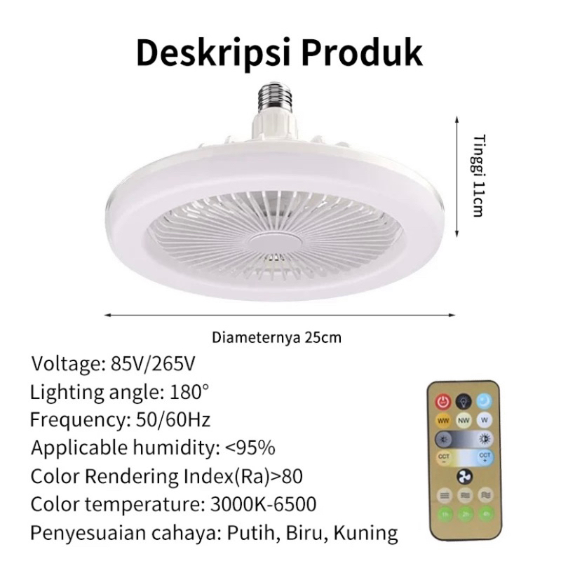 LAMPU KIPAS ANGIN REMOTE 2IN1 LAMPU PLAFON MULTIFUNGSI LAMPU KIPAS LED 50W ANTARMUKA E27 856