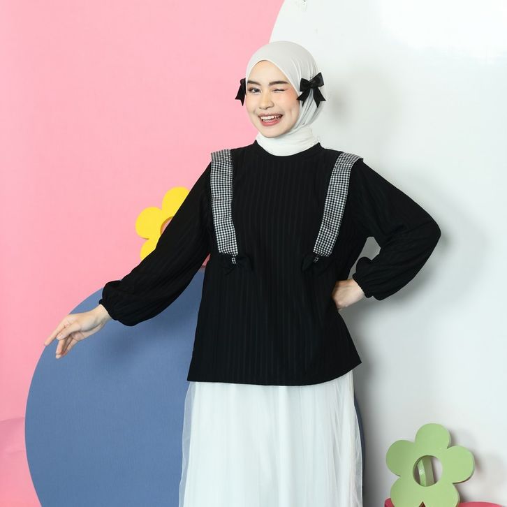 Baju Atasan Muslim Wanita Mybamus Nima Knit Tops Blouse Coquette Pita Kekinian Terbaru
