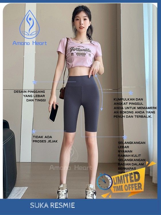 【Amanoheart】Hitam Celana kebugaran lima titik pinggang ultra-tinggi Ukuran besar Celana Pendek Yoga Legging Celana Olahr