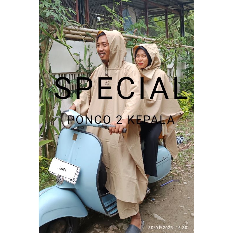 Jas Hujan Motor Ponco 2 Kepala Dobel Ponco 2in1 Jumbo Pvc, Jas Hujan Tebal 2in1 Ponco Jumbo.
