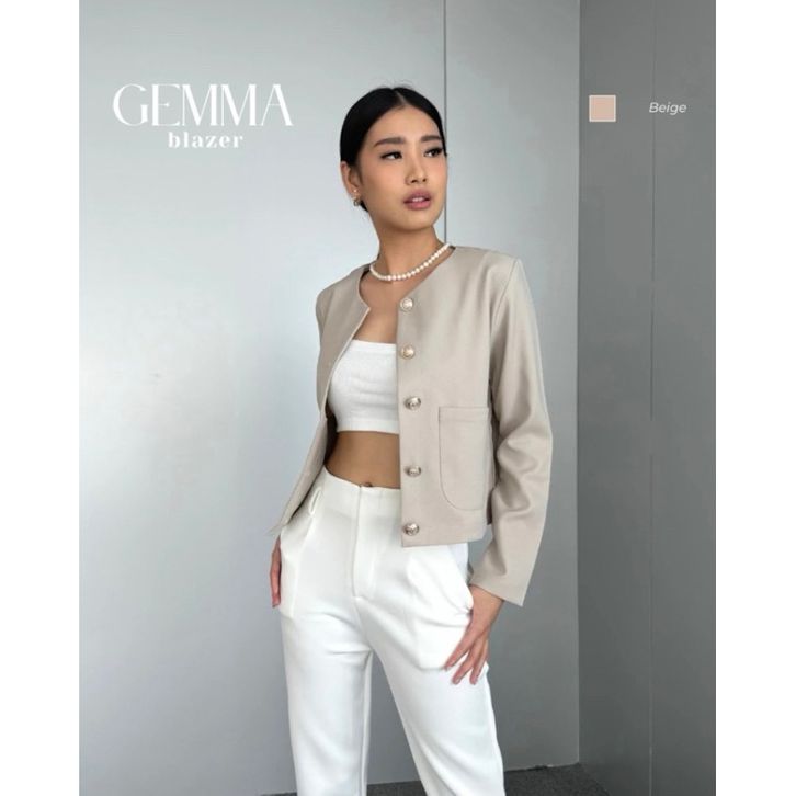 Blazer Outer Wanita Gemma Atasan Girls Korean Crop Bahan Semi Wool Premium Flowlly Termurah