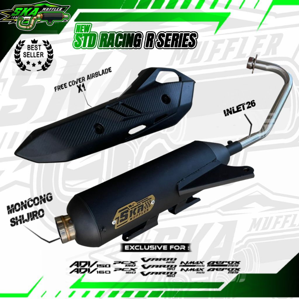 KNALPOT STANDAR RACING SHIJIRO SARINGAN SETENGAH FULL BORBORAN ORIGINAL SKA MUFFLER TABUNG VARIO MONCONG INLET 26 RATA