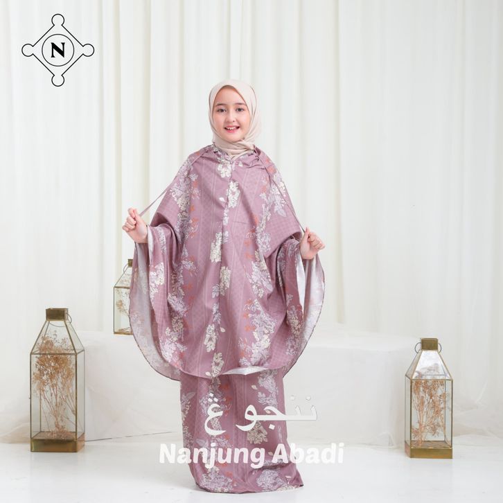 Mukena Anak Perempuan Resleting 6-12thn Katun Mikro Motif Bunga Lucu