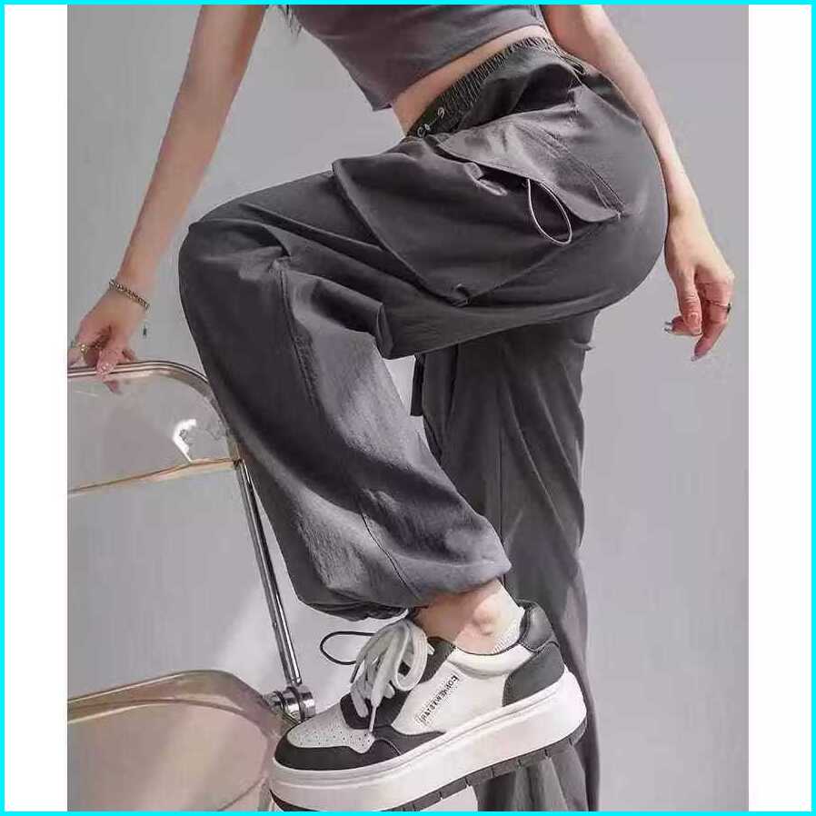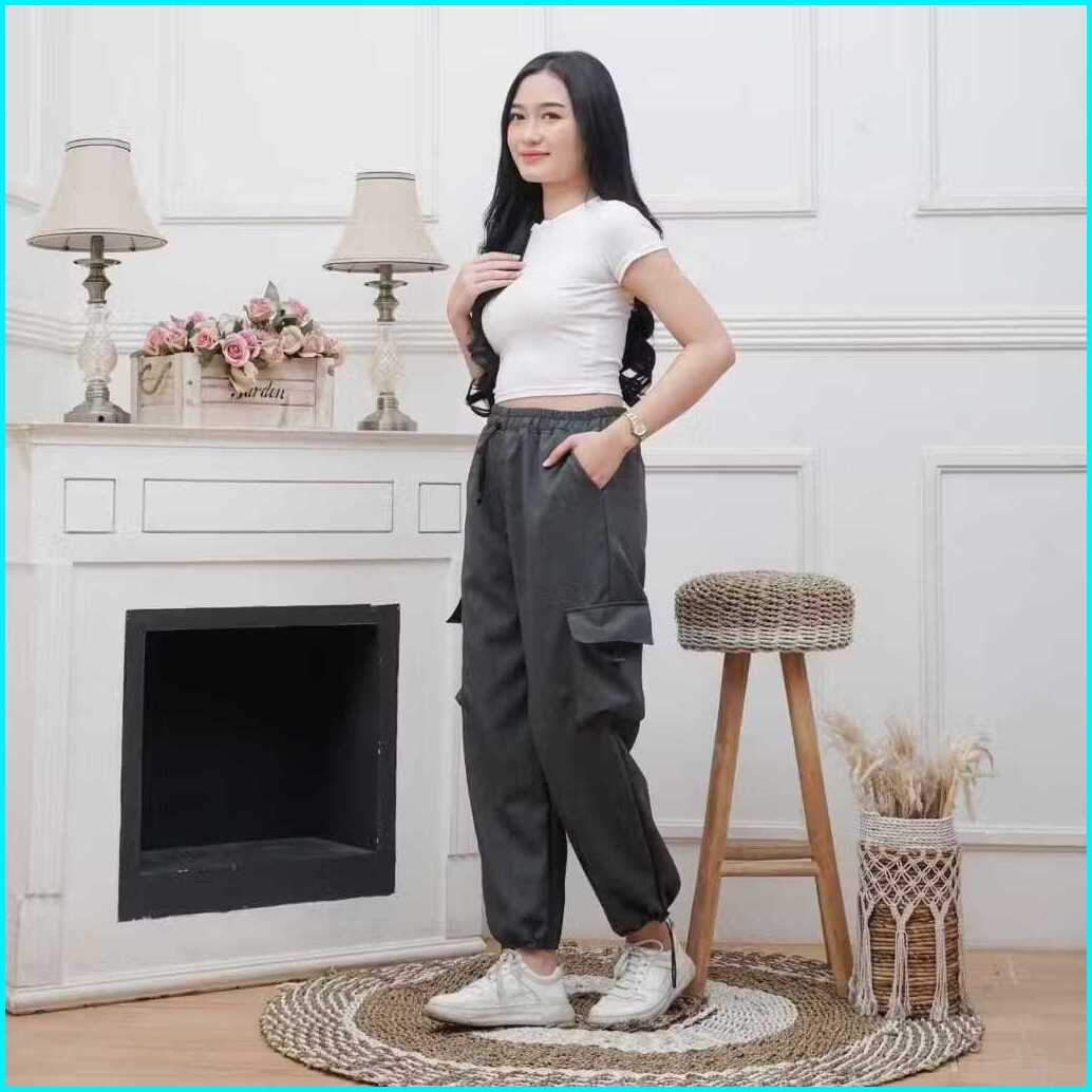 Celana Cargo Wanita Panjang High Waist Loose Pants Korean Stail Tali Serut Standart Jumbo Cargo Pants Wanita
