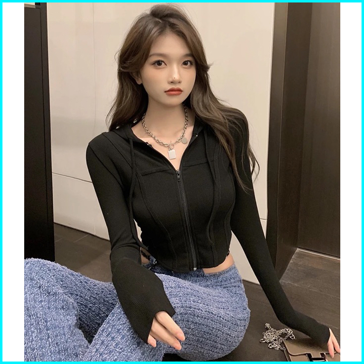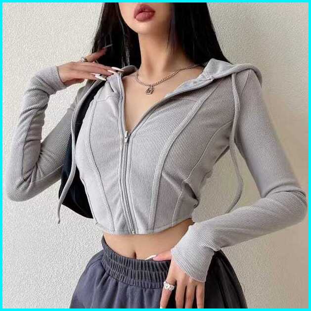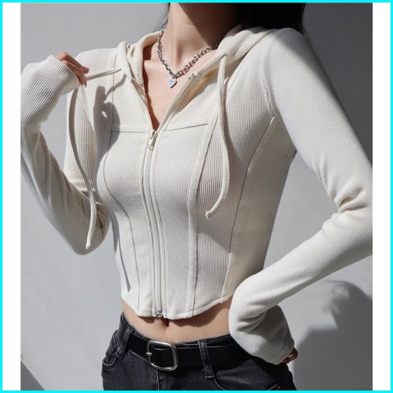 Long Sleeve Reina Hoodie Crop Top Zipper Jaket Zipper