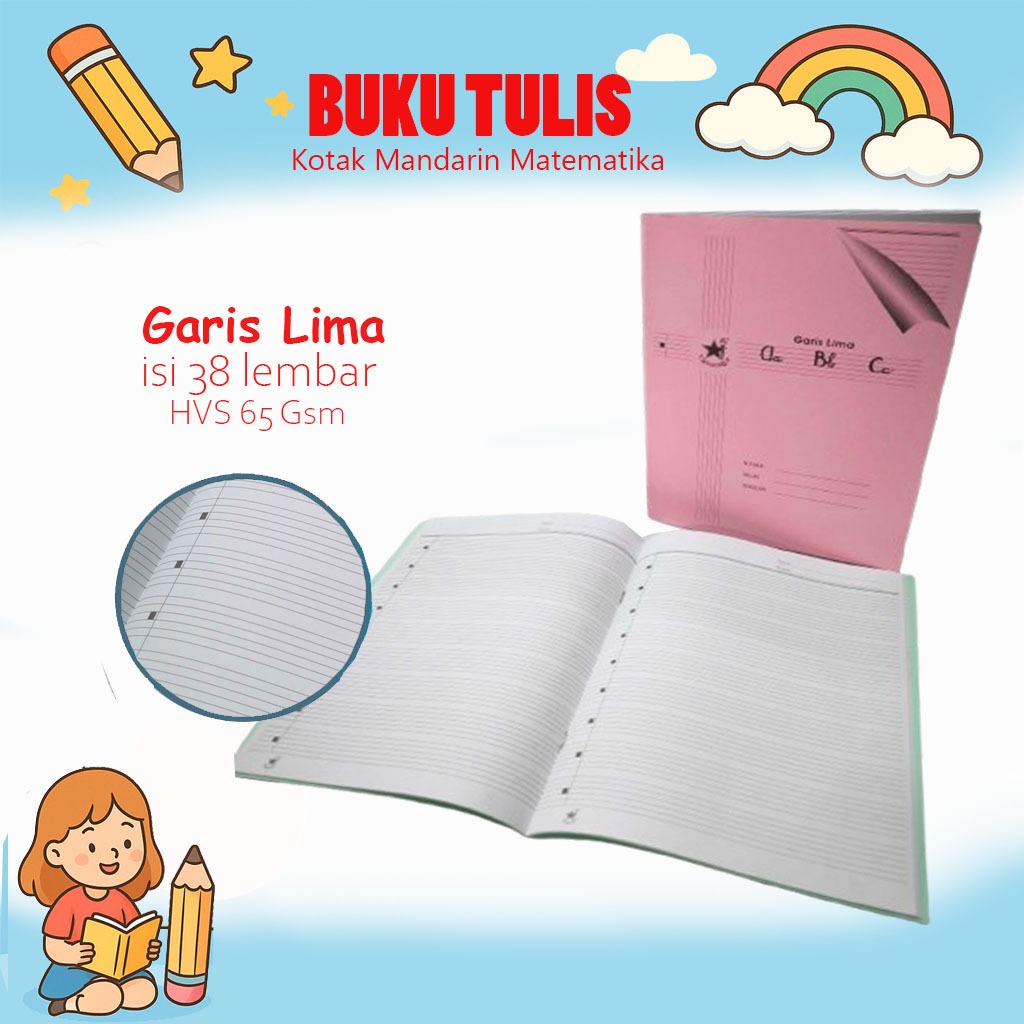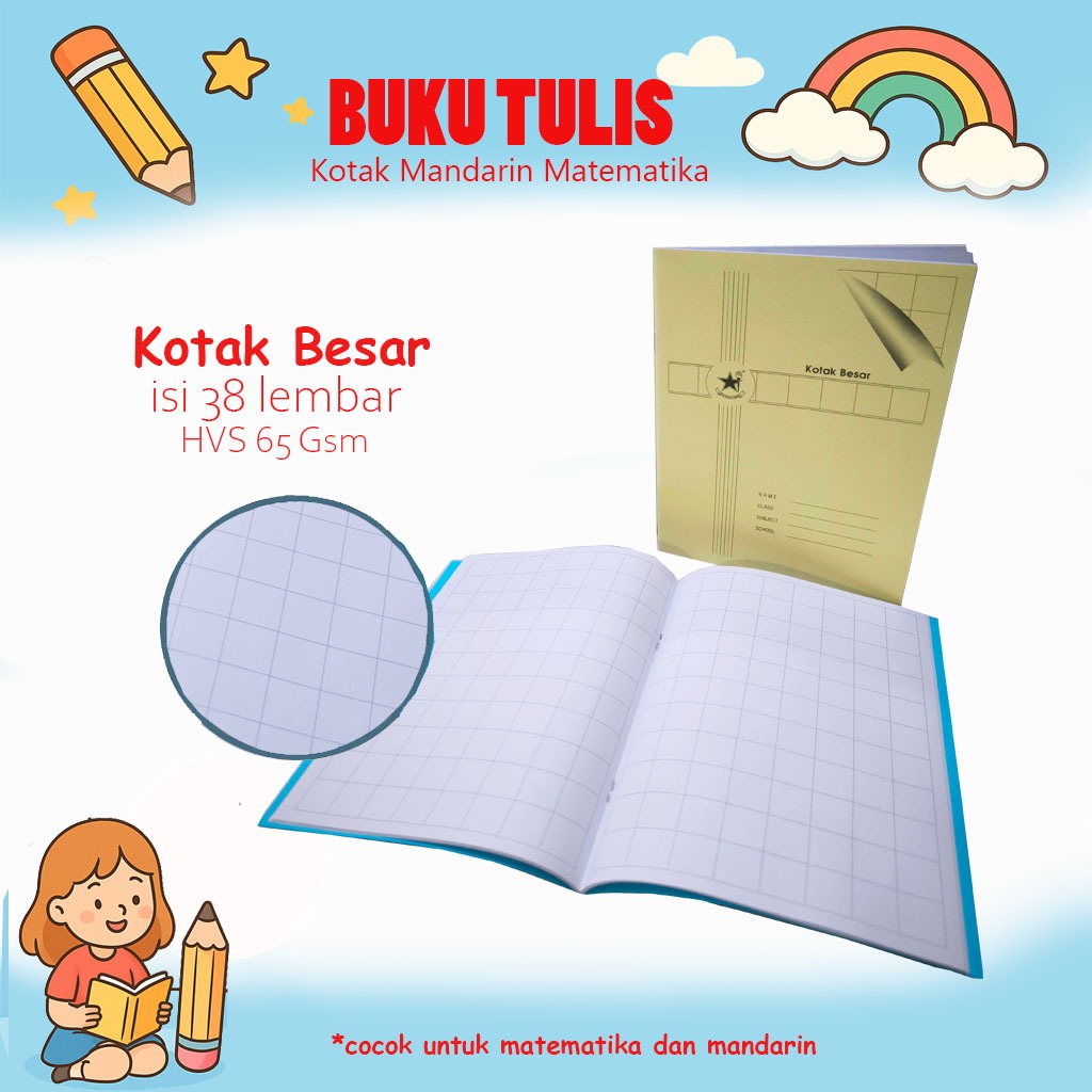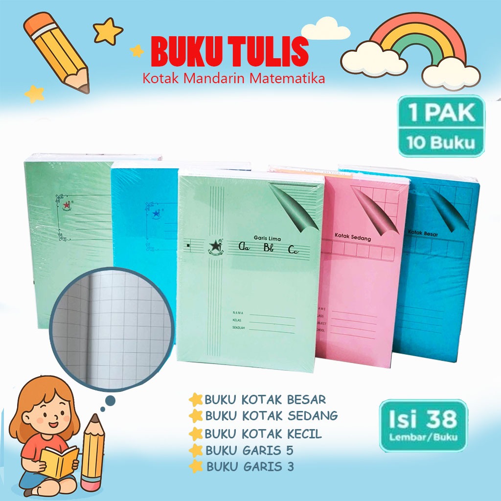 10 Buku Tulis Kotak Besar Mandarin / Kotak Sedang / Kotak Kecil / Garis 5 / Garis 3 / Matematika Bintang Obor 38 Lembar