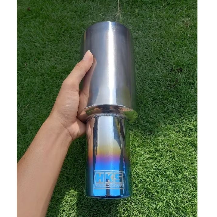 Knalpot Mobil HKS Gronel Biru Suara Bass Bulat Adem Untuk Semua Jenis Mobil