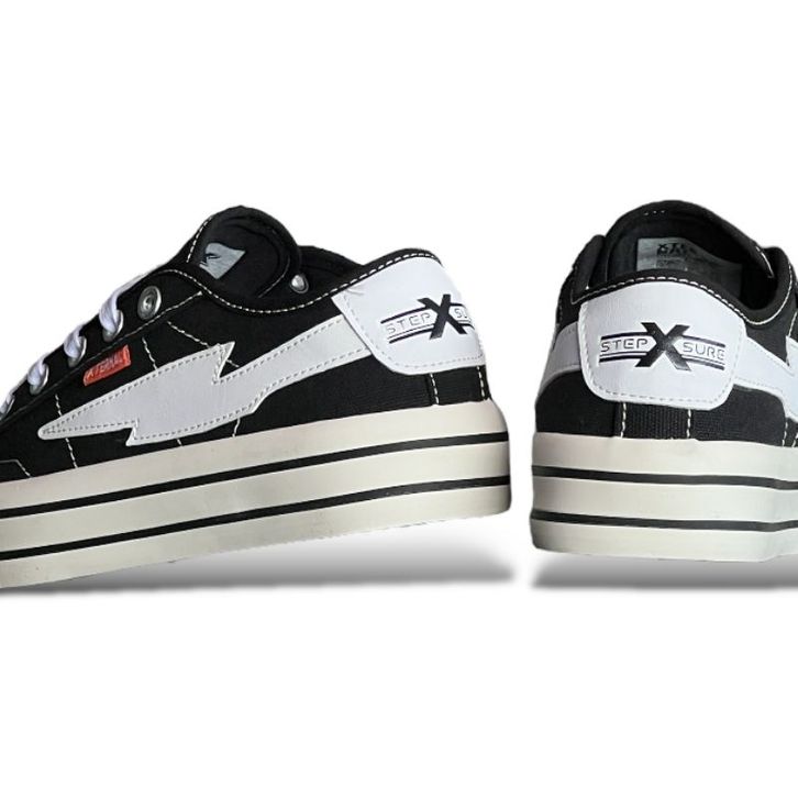 Sepatu XternalStepSure - Sepatu Pria Sneaker Miterns Storm Low Black White Canvas - Sepatu Pria Casual Keren Skena
