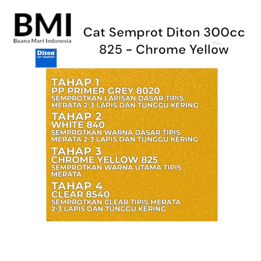 Pilox DITON 300cc | 825 Chrome Yellow 300ml | Pilok Cat Semprot | Pylox Spray Paint | (1PC)
