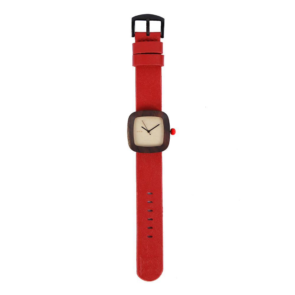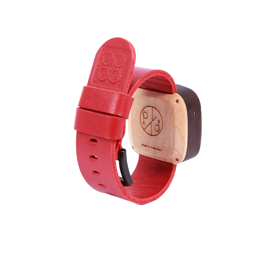JAM TANGAN WANITA KAYU PALA NUSANTARA MERAH MINI KULIT ASLI KEKINIAN ELEGAN