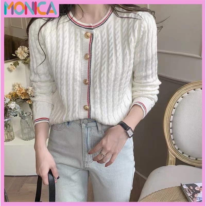 Cardigan Monica Gaya baru Terlaris kardigan angin harum kecil mantel wanita rajut atasan pendek lembut Jepang