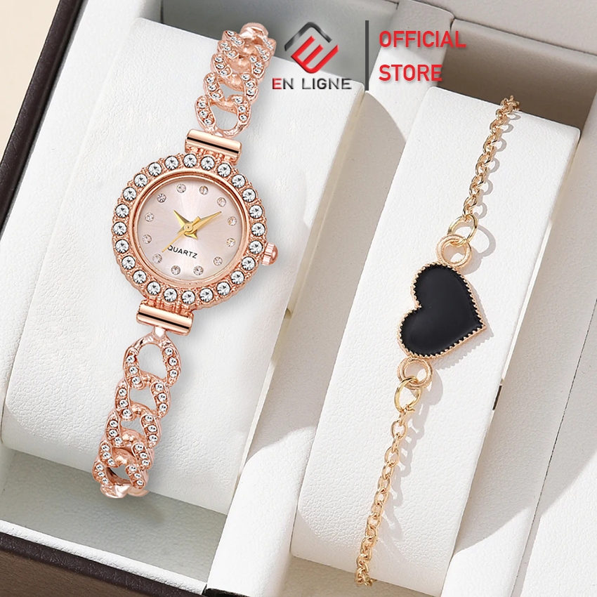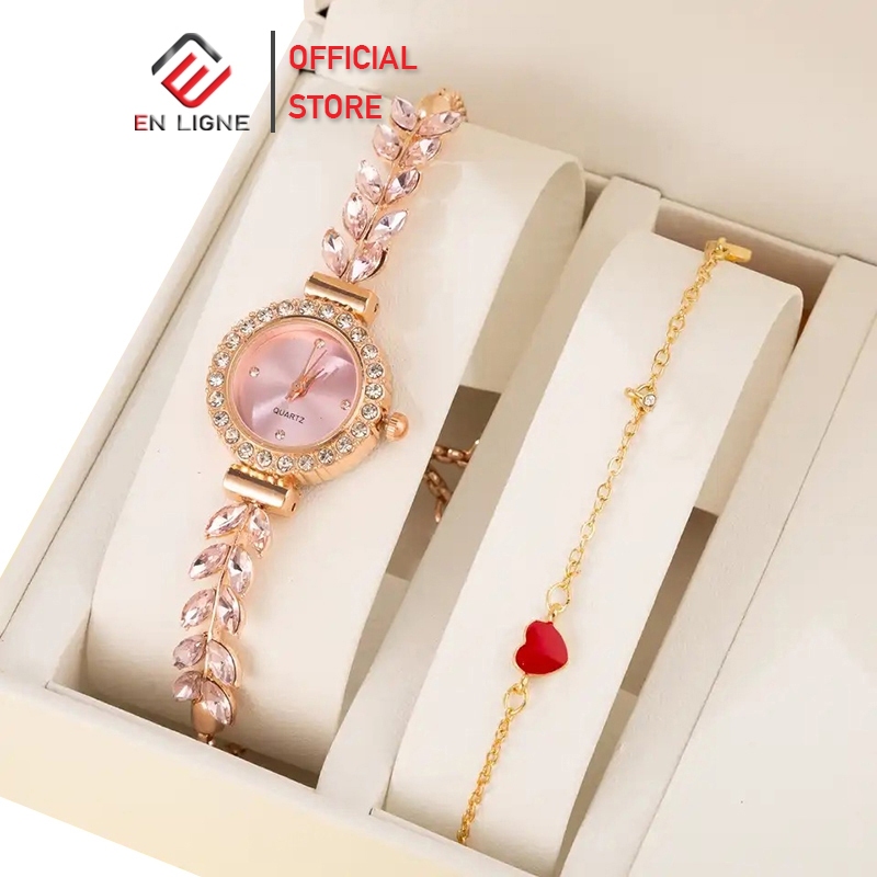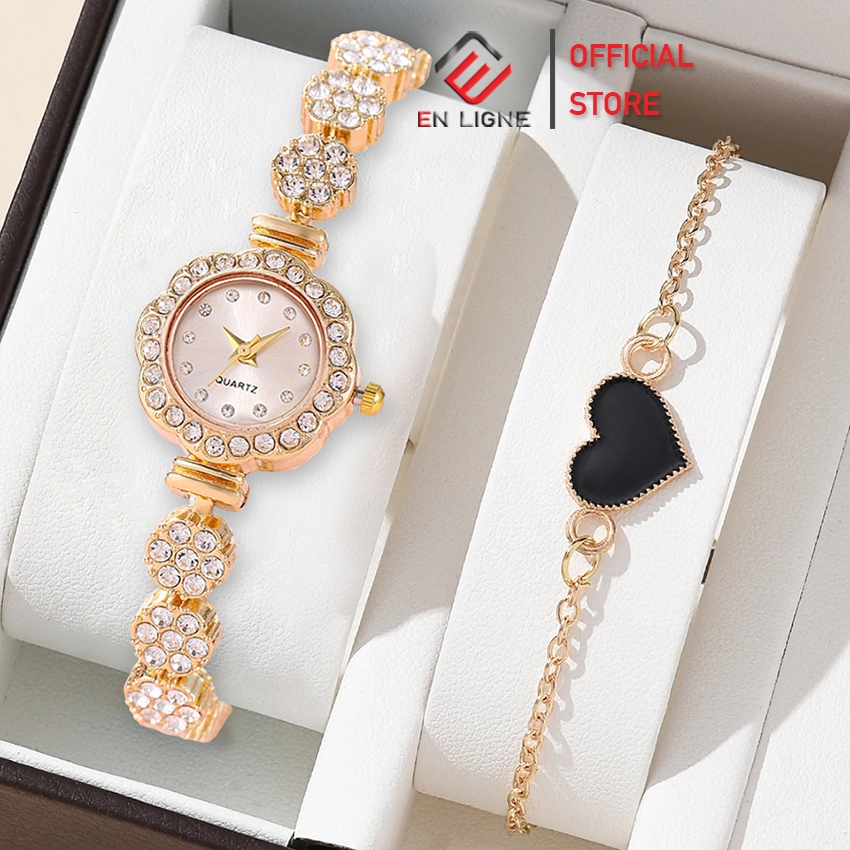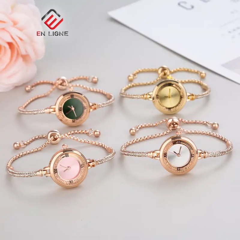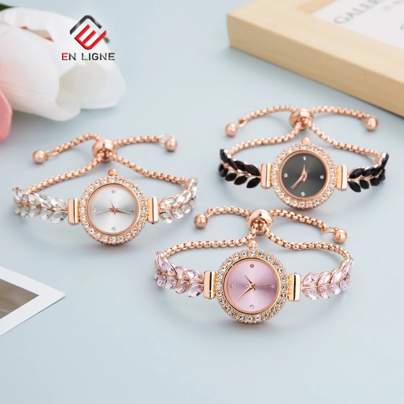 Jam Tangan Wanita Korea Elegan – Gelang Serut Crystal Stainless + Bonus Gelang Fashion