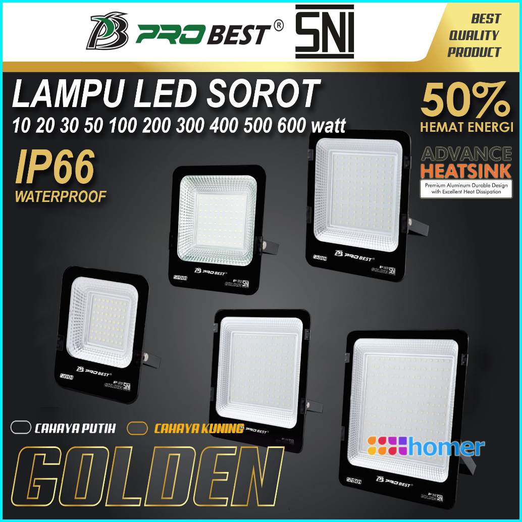 Probest Golden Lampu Led Sorot Lampu Tembak Led Ip66 Sni Waterproof 200w 200watt 200 W 200 Watt Lampu Sorot Lampu Tembak