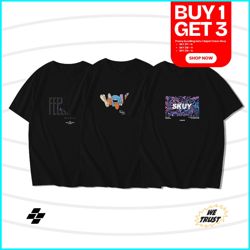 Skuy Buy 1 Get 3 - Kaos Skuy Dewasa Warna Hitam Lengan Pendek Pria Baju Oblong Bahan Katun Combed 24s Skuy Youth Sky217