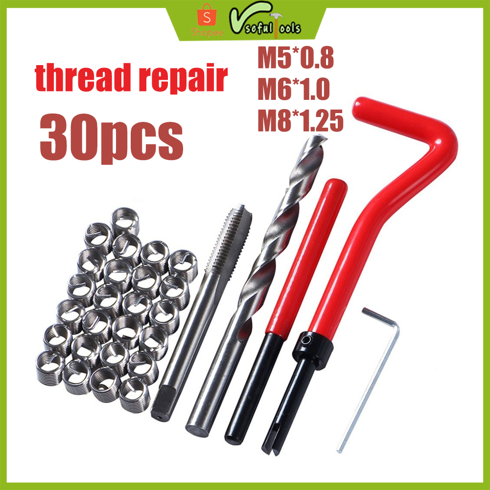 Usefultools Thread Repair set 30pcs Recoil M5/M6/M8 Alat Mobil Motor Ulir Kit Insert Busi