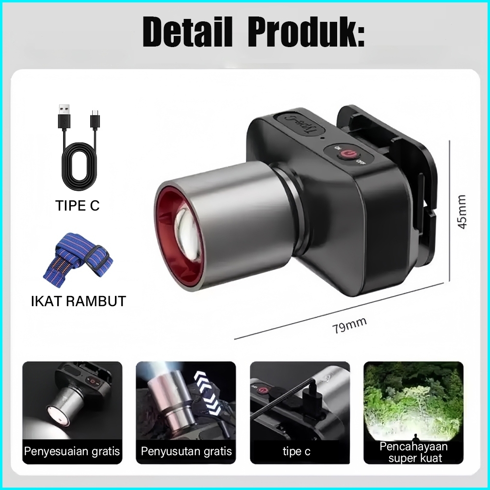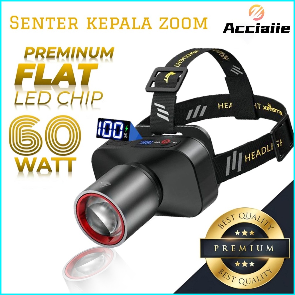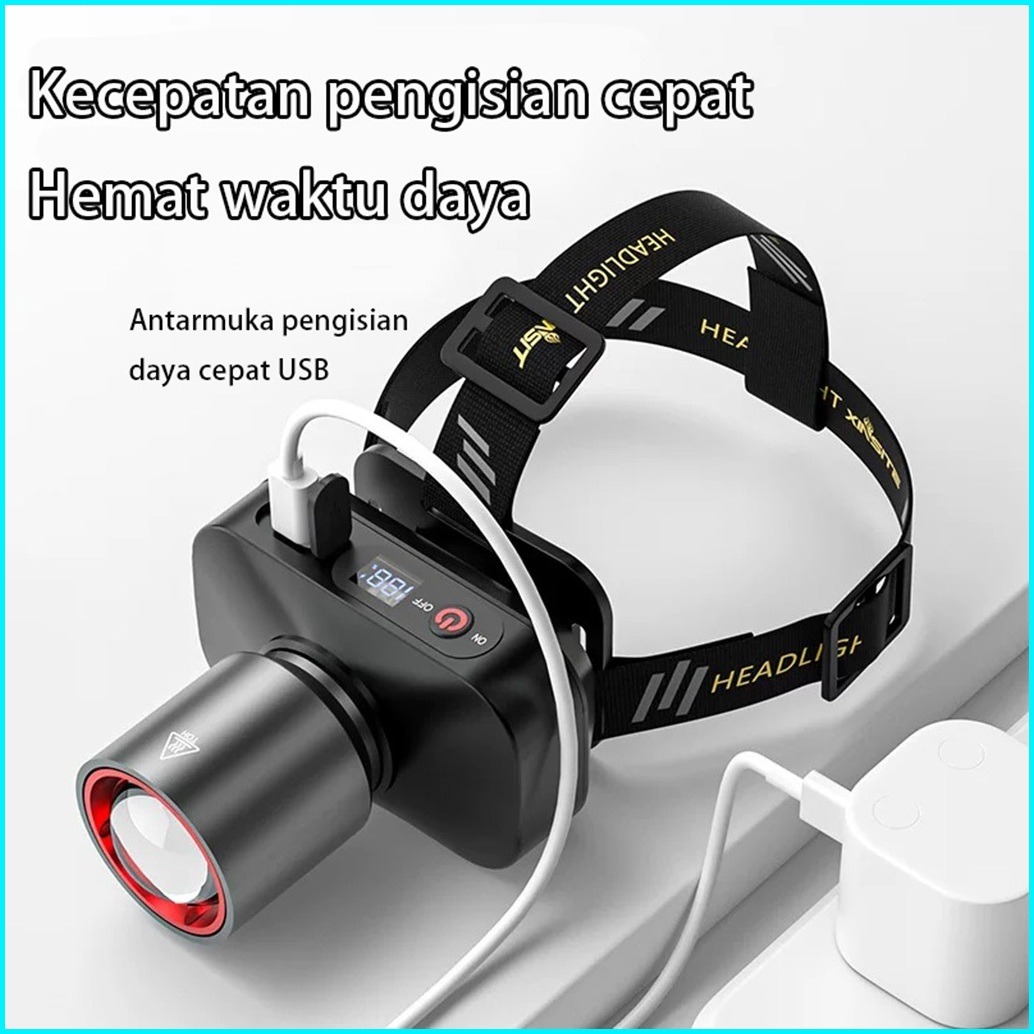 Acciaiie Senter Kepala Super Terang Tampilan Digital Zoom Lampu Kepala Super Terang Dan Awet Anti Air Headlamp Outdoor