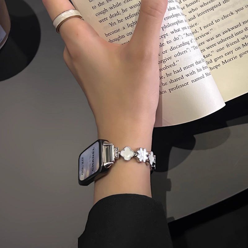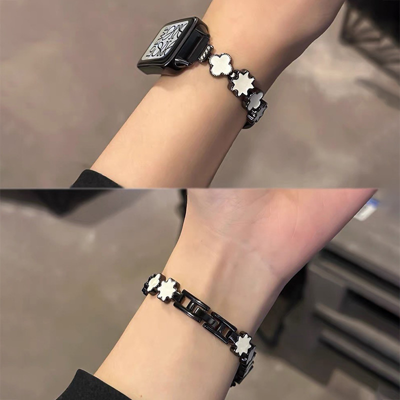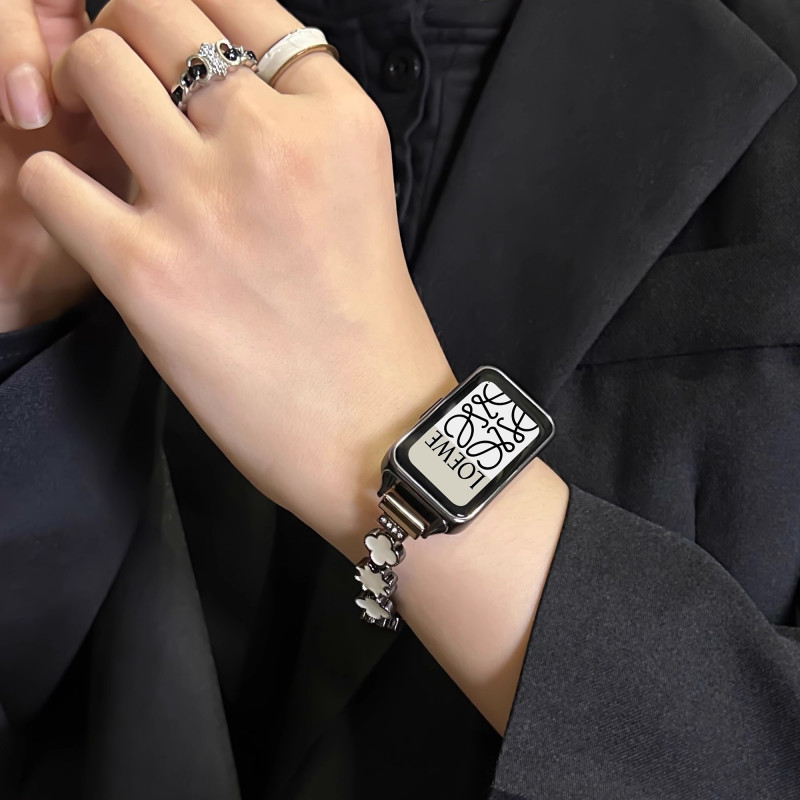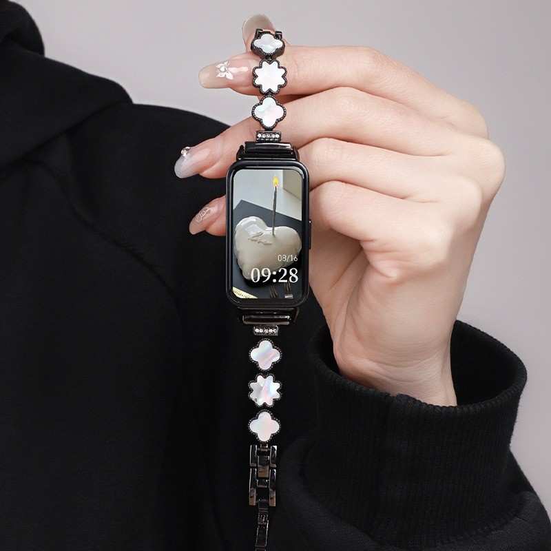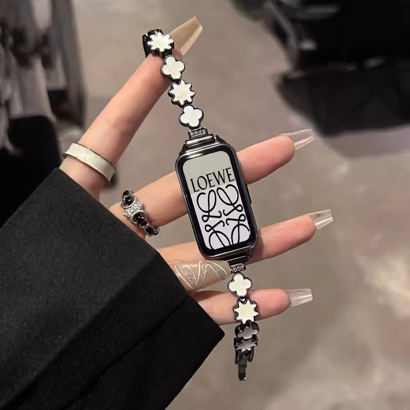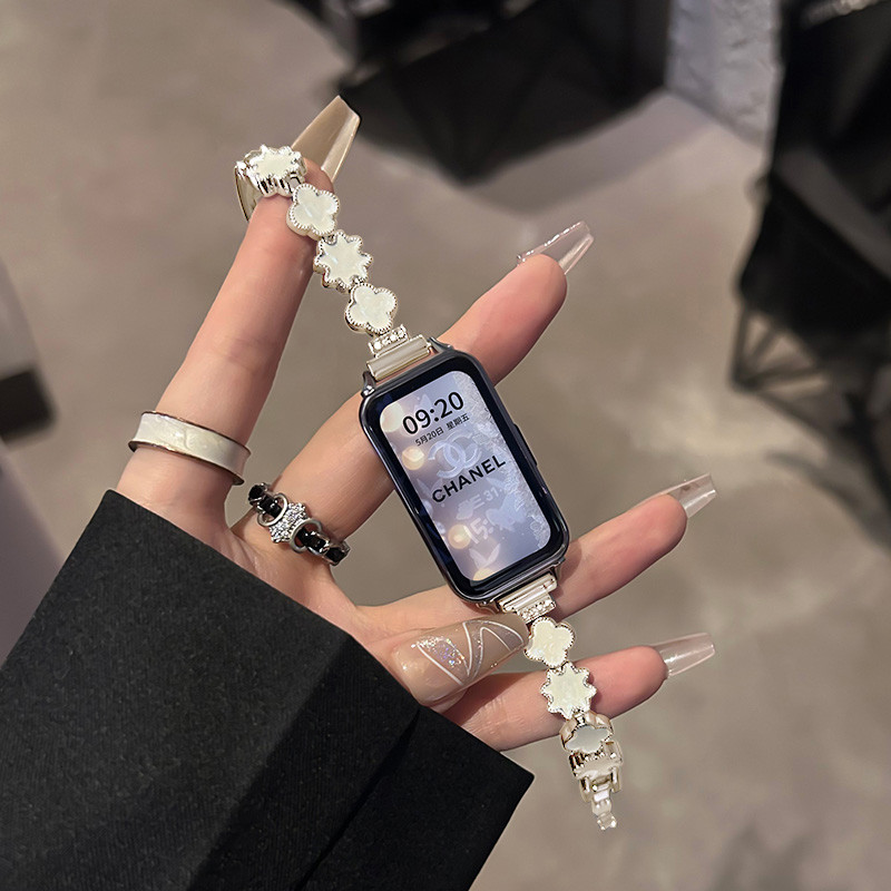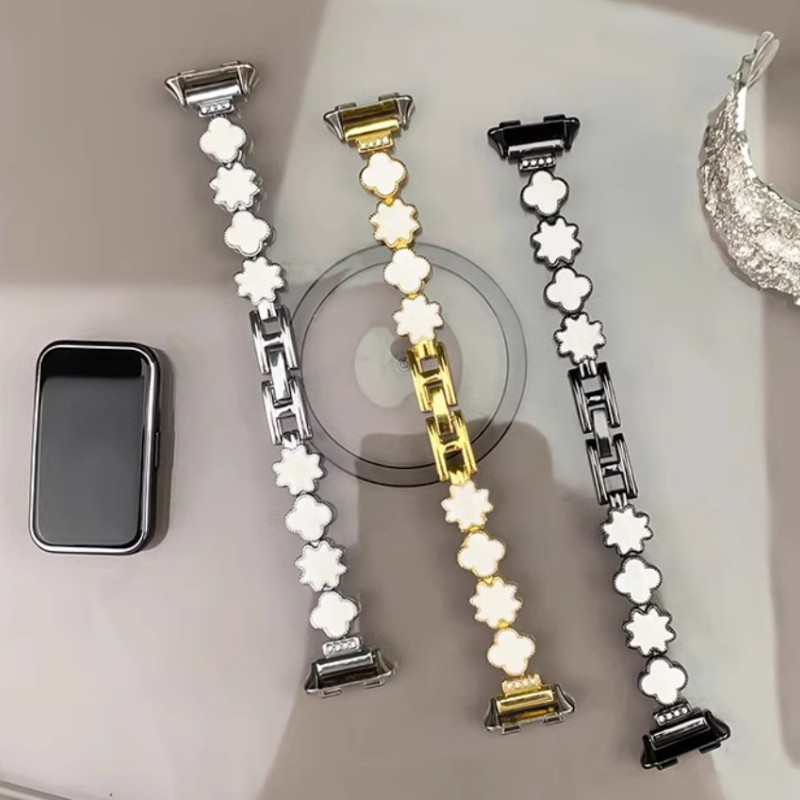 Steel Strap For Huawei Band 10/9/8 Tali Pengganti Original Stainless Steel Four-leaf Clover Metal Strap Lucu Strap