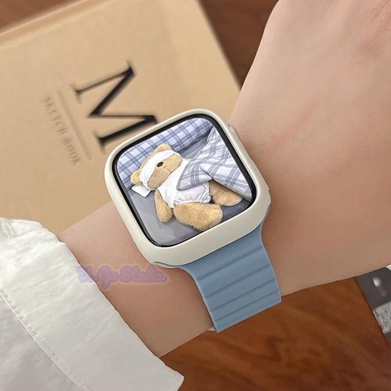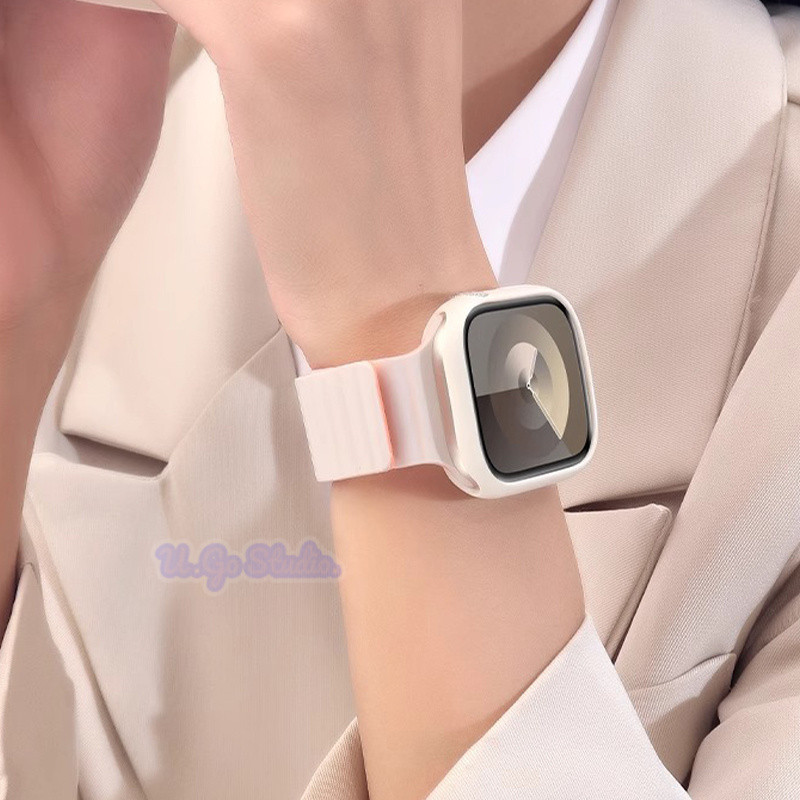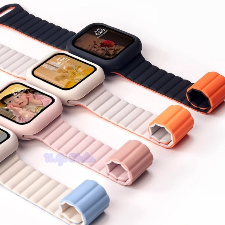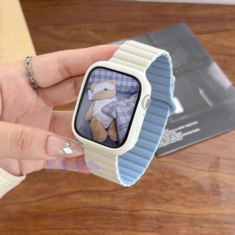 Silicone Loop Magnetic Strap For Apple Watch Ultra 2 Series 9 8 7 6 SE 5 4 3 2 1 Size 49 45 44 42 41 40 38mm Smart Watch