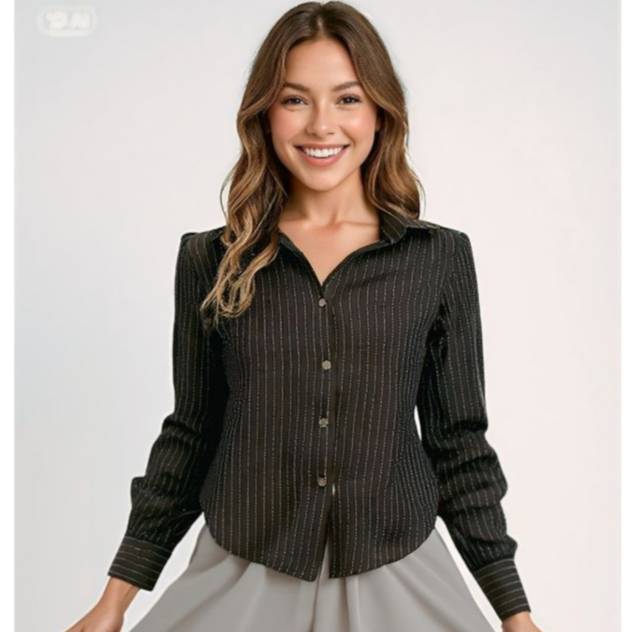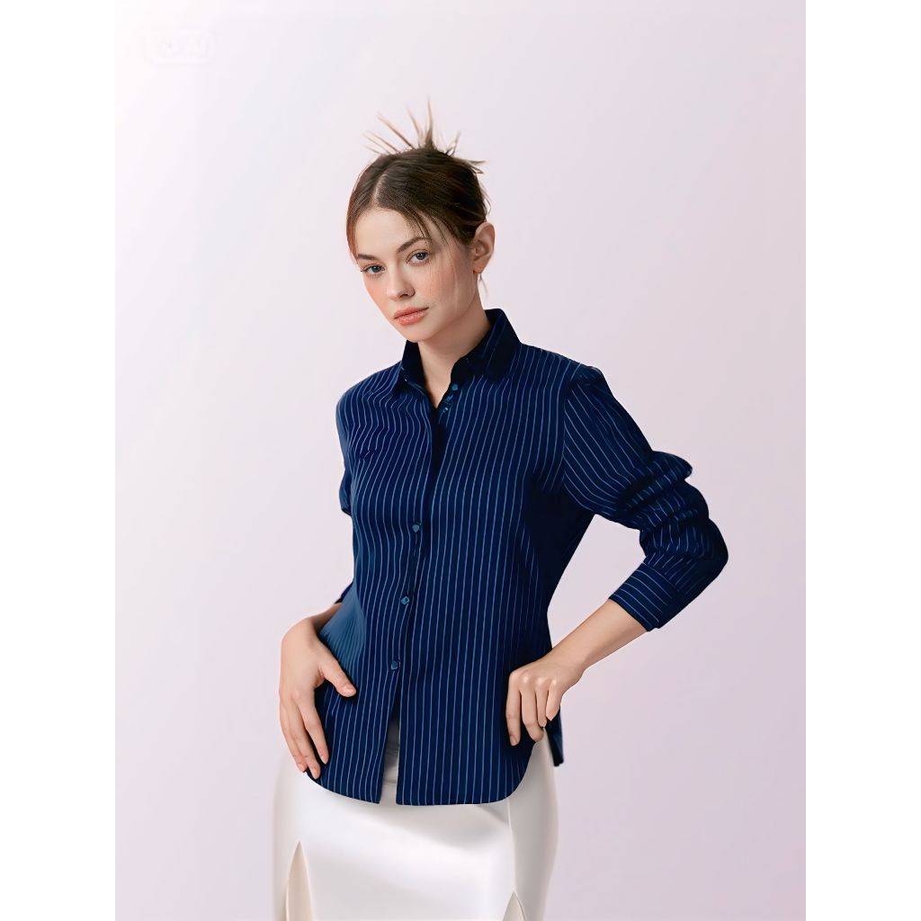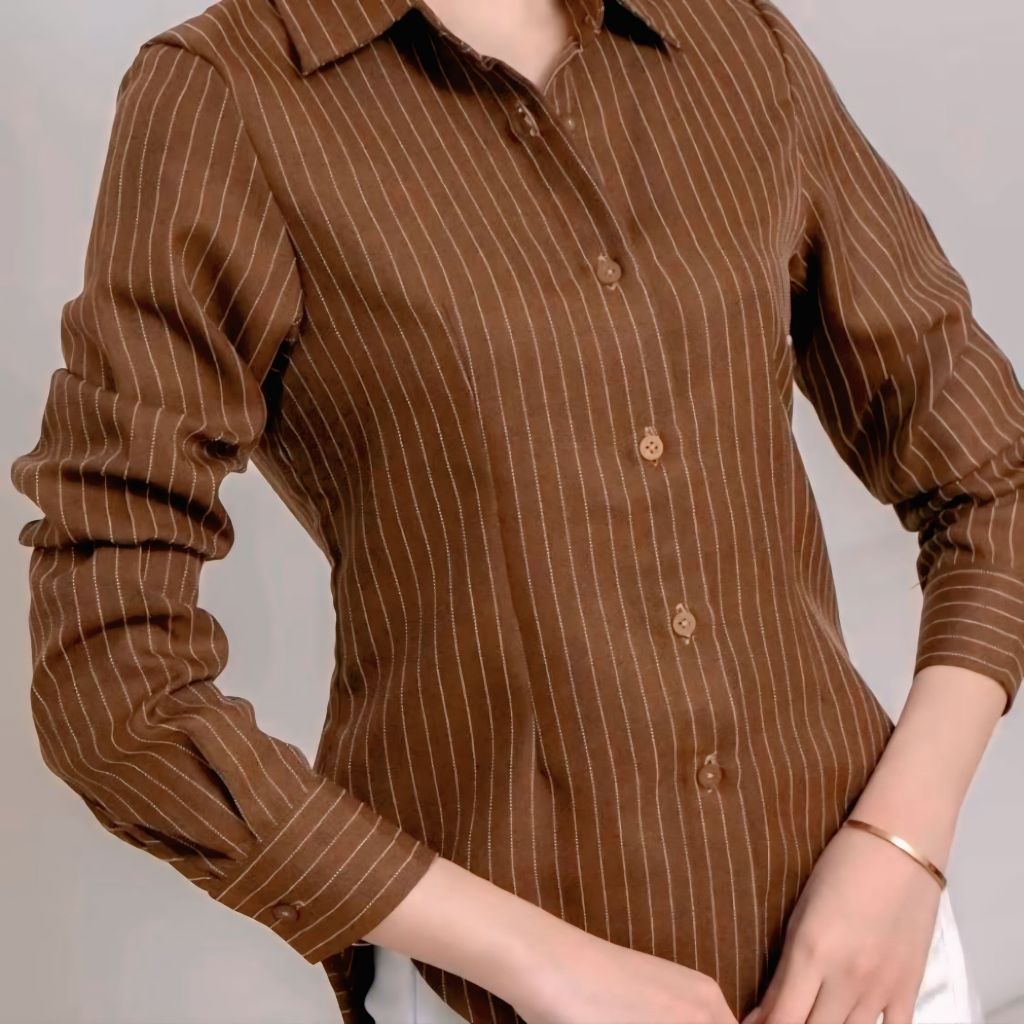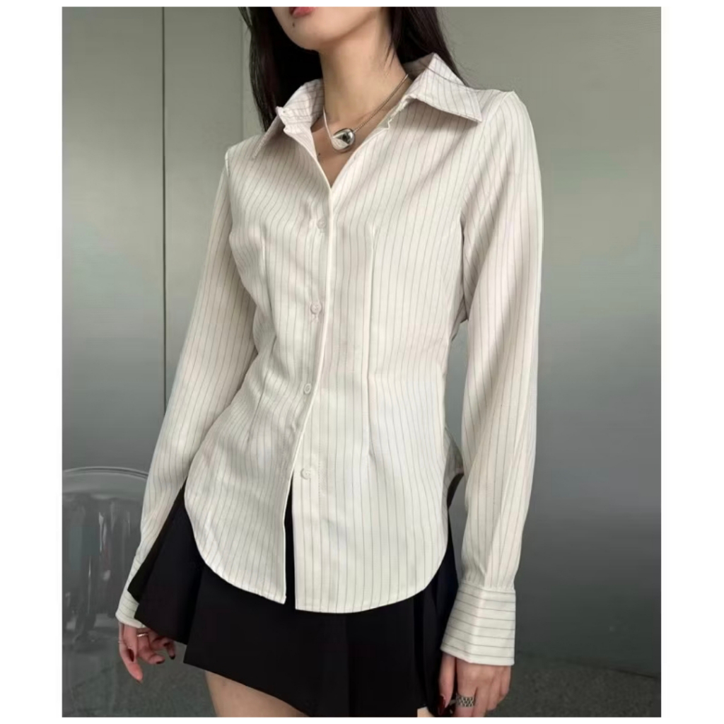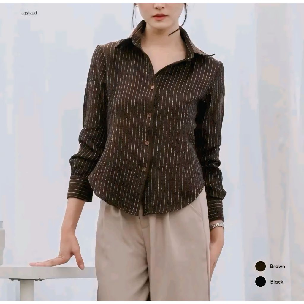 Luna Stripe Fitted Kemeja Blouse Salur Longsleeve Wanita Lengan Panjang Slimfit Basic Casual Shirt