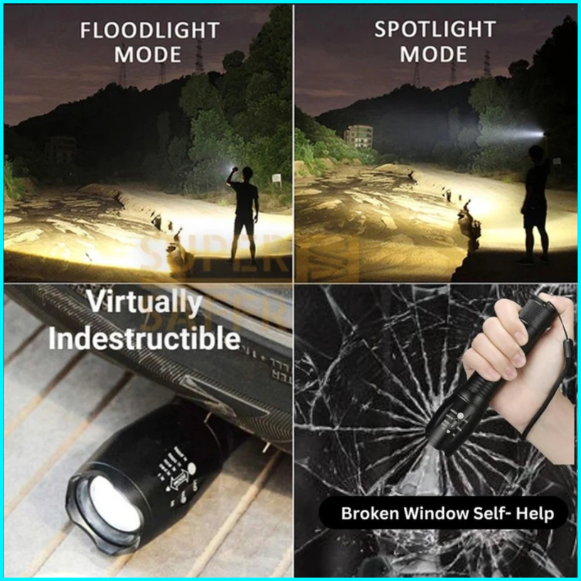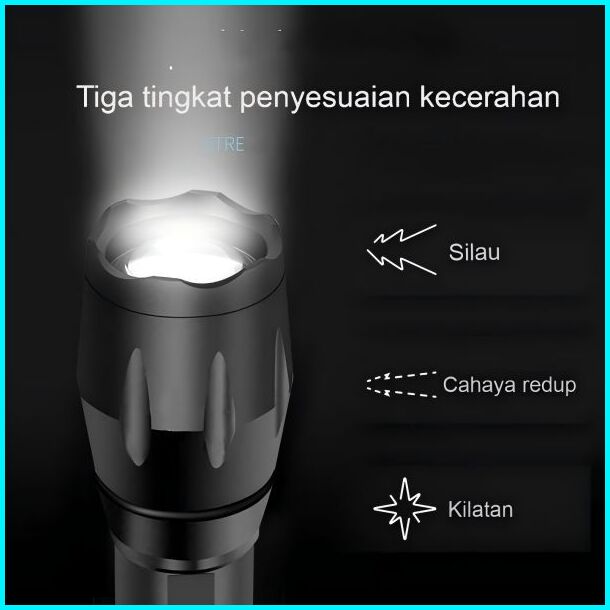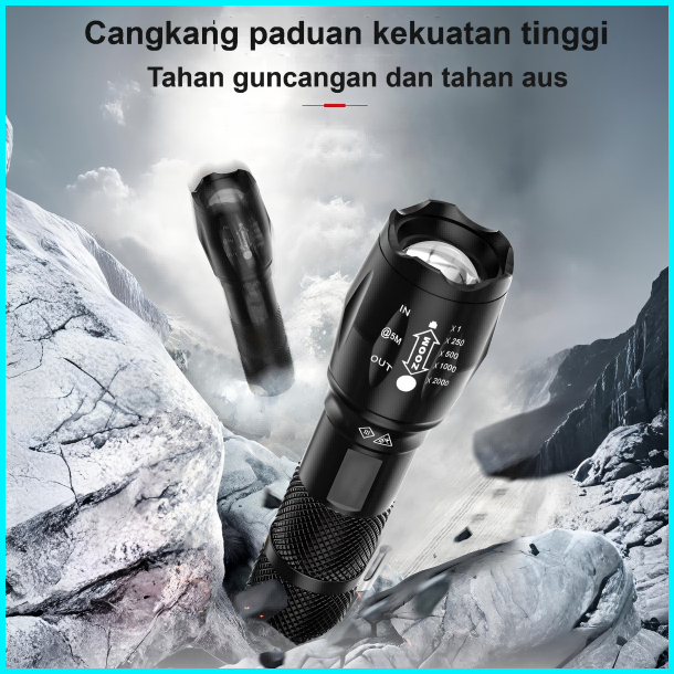 Senter Rechargeable Aluminium 1800ma Zoom In Out 3 Mode Super Light Waterproof Wj06