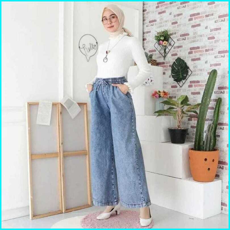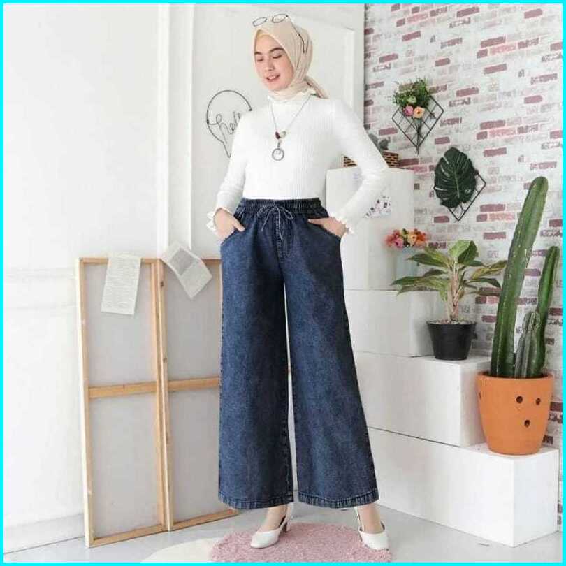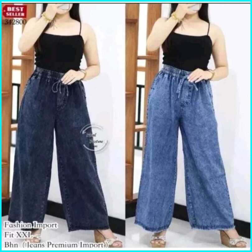 Celana Wanita Kekinian - Kulot Jeans Denim Jumbo Super Jumbo Xl Xxl Xxxl
