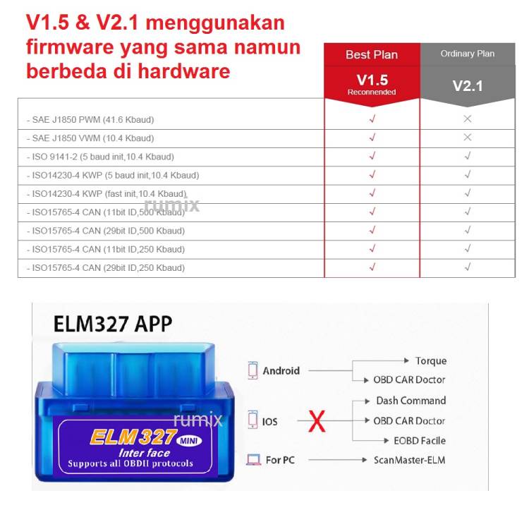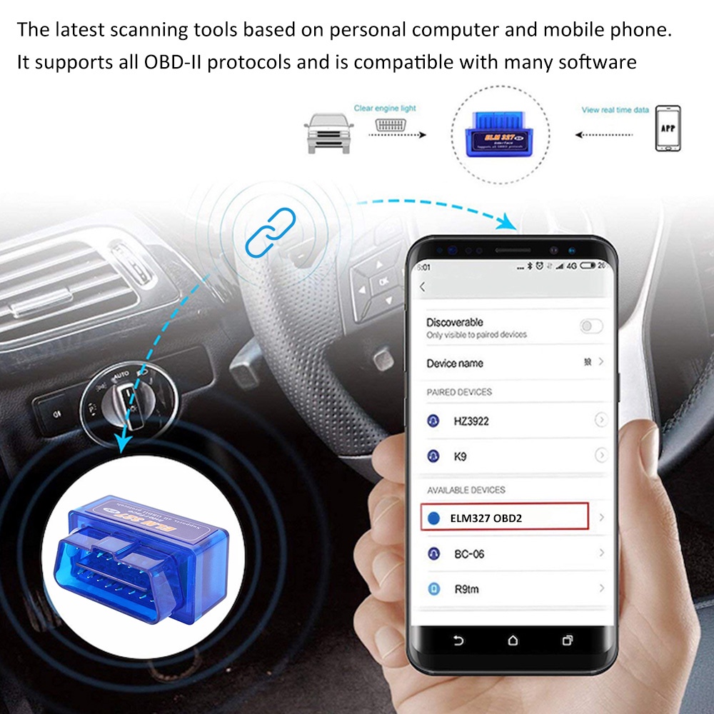 ELM327 Mini OBD OBD2 Bluetooth Wireless Car Scanner V1.5 V2.1 Alat Scan Mobil OBDII Auto Tool