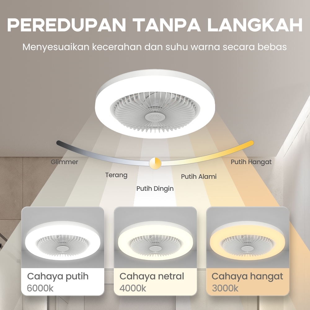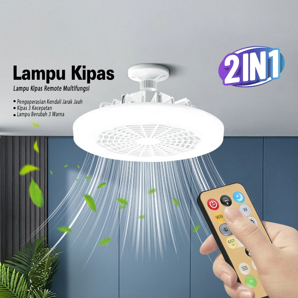 TERLARIS LAMPU KIPAS AC E27 50WATT PLAFON REMOTE CONTROL LED LAMPU KIPAS RUANG TAMU 2IN1