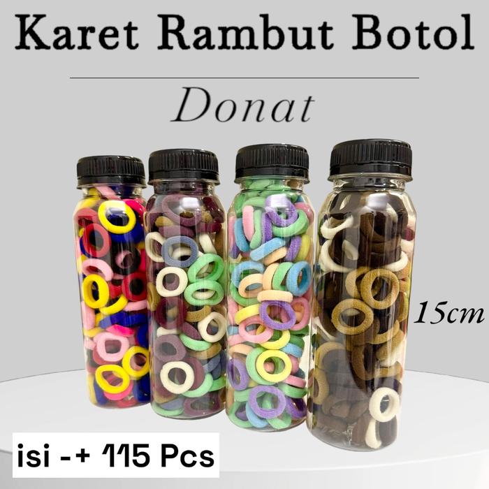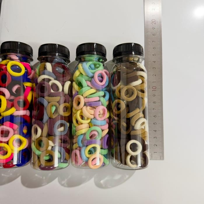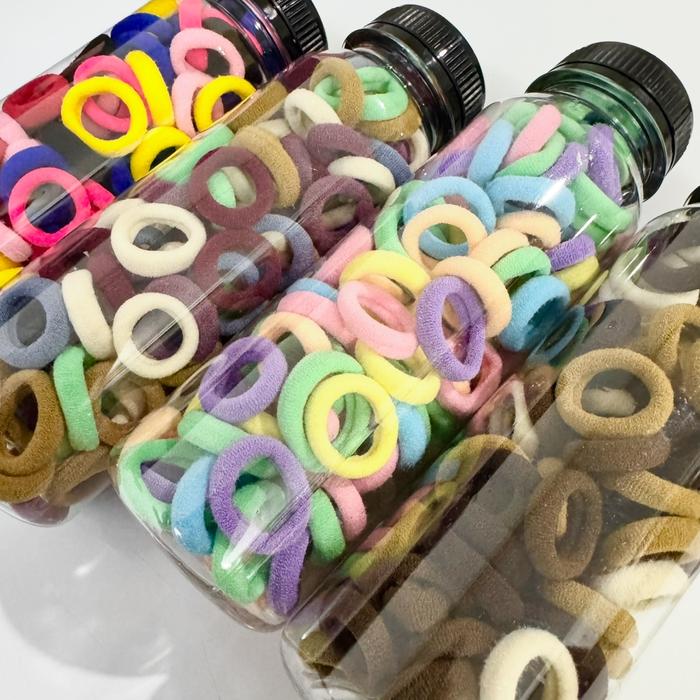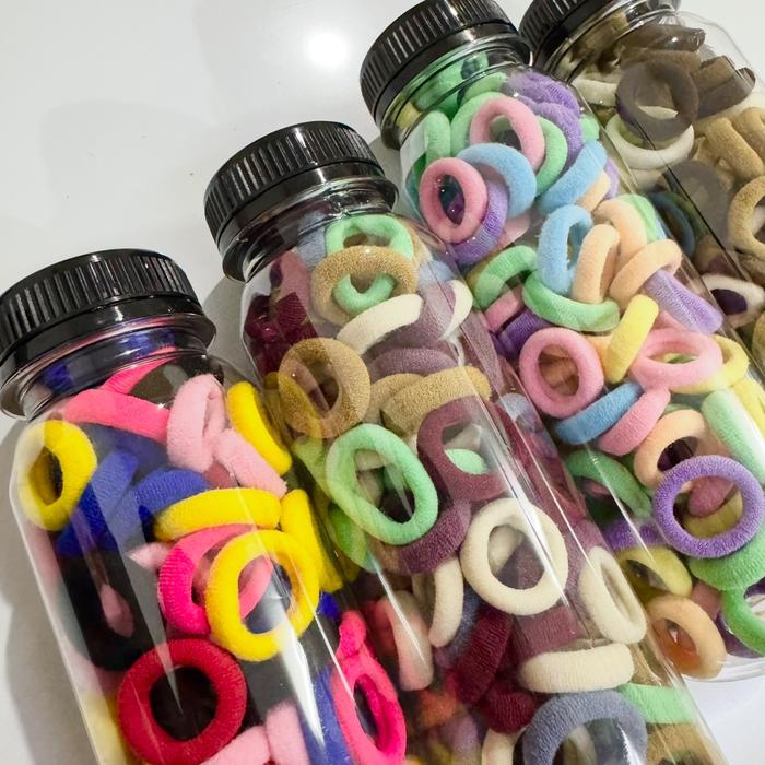 Karet Rambut botol isi 100 pcs Ikat rambut donat warna warni karet rambut jepang Tabung isi 500 pcs - IKAT BOTOL - Donat