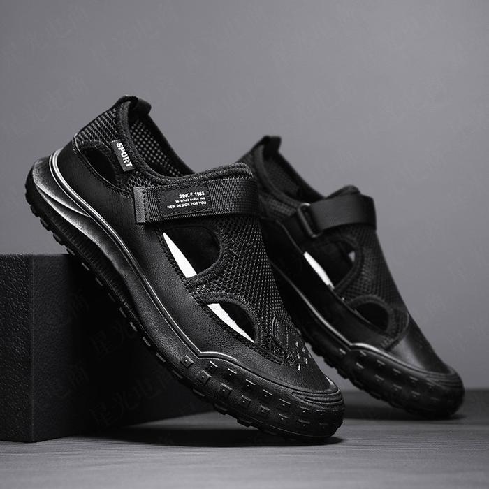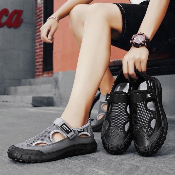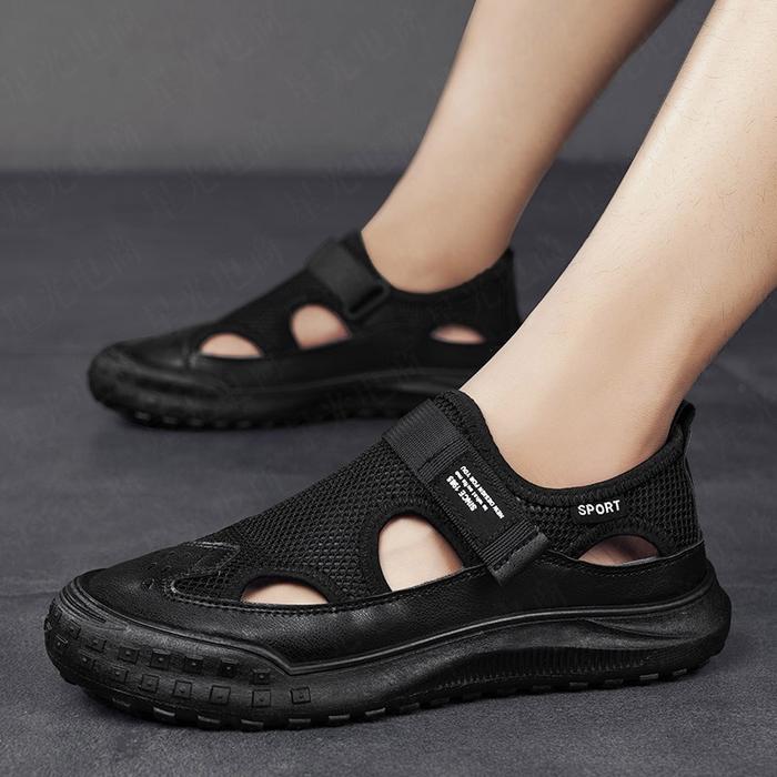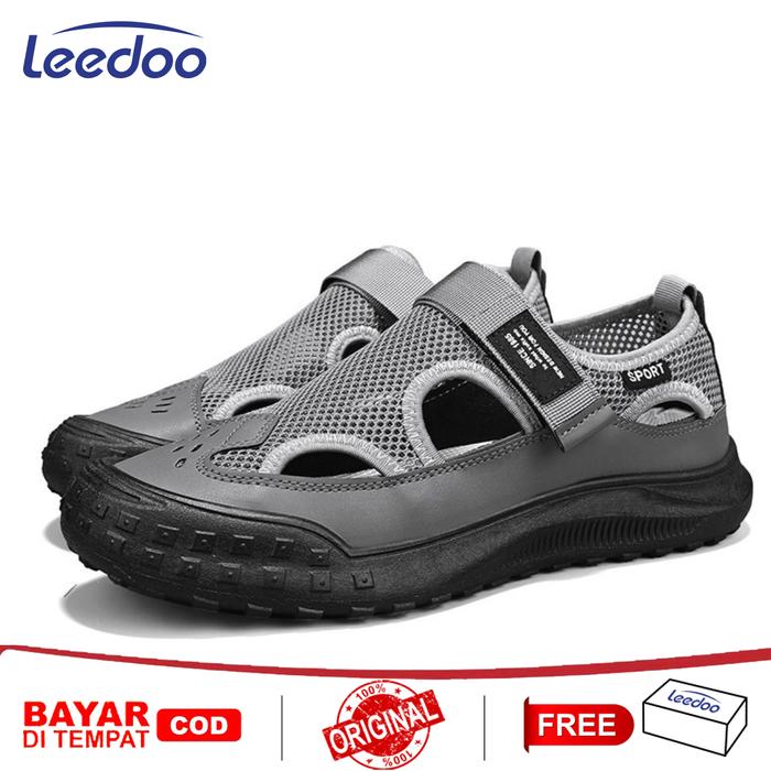 Leedoo Sepatu Sendal Outdoor Pria Model Slip On Sandal Gunung Hiking Cowok Anti Slip MT108 - Hitam , 40