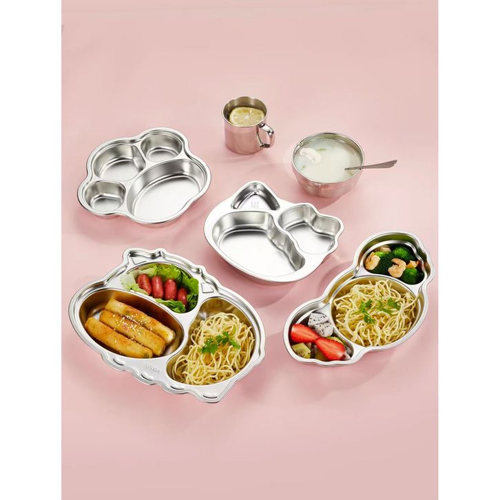 Piring Stainless Anak Piring Makan Sekat Anak SUS 304 Piring Sekat Stainless Anak Dewasa /Anti Pecah