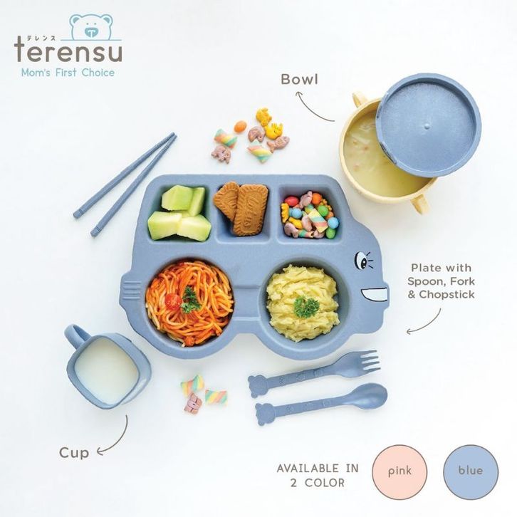 Terensu Wheat Straw Set Peralatan Makan Piring Anak Motif Mobil