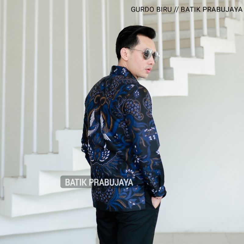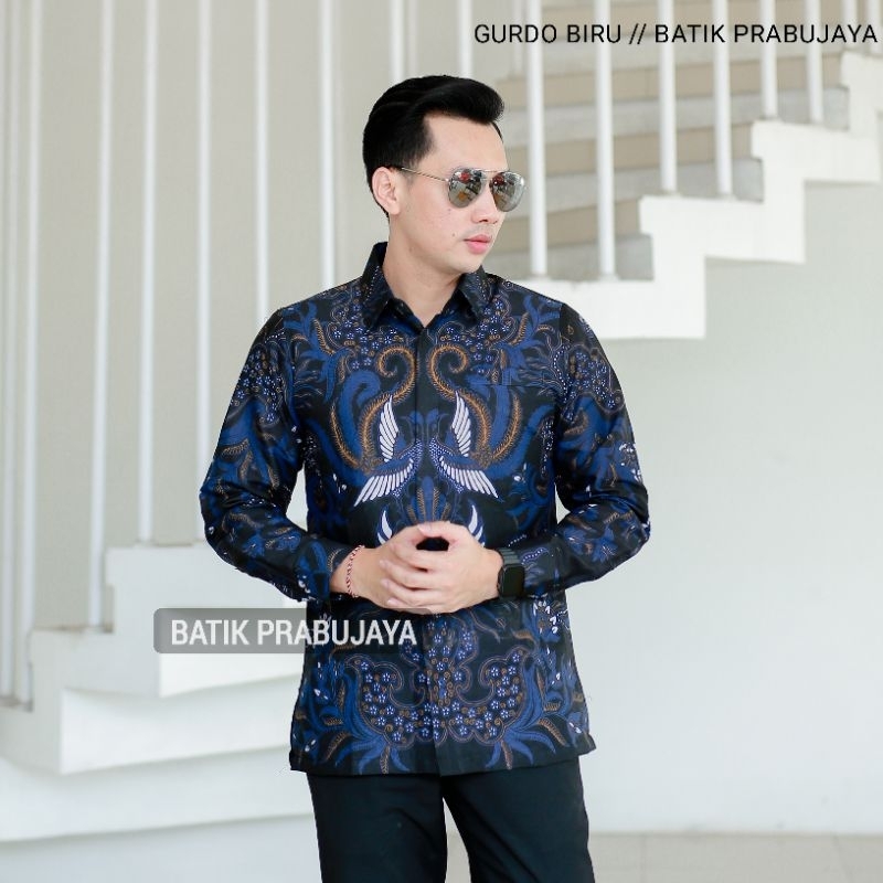 GURDO BIRU KEMEJA BAJU BATIK PRIA LENGAN PANJANG MODERN PREMIUM FULL FURING KATUN HALUS