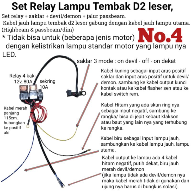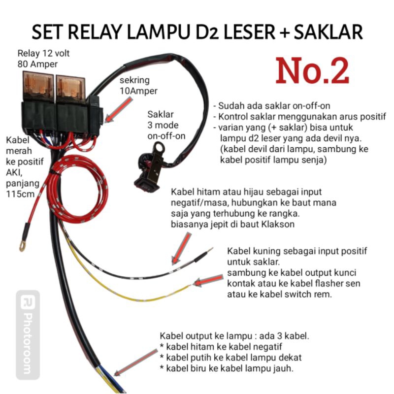 Relay set lampu D2 leser + saklar dan tanpa saklar