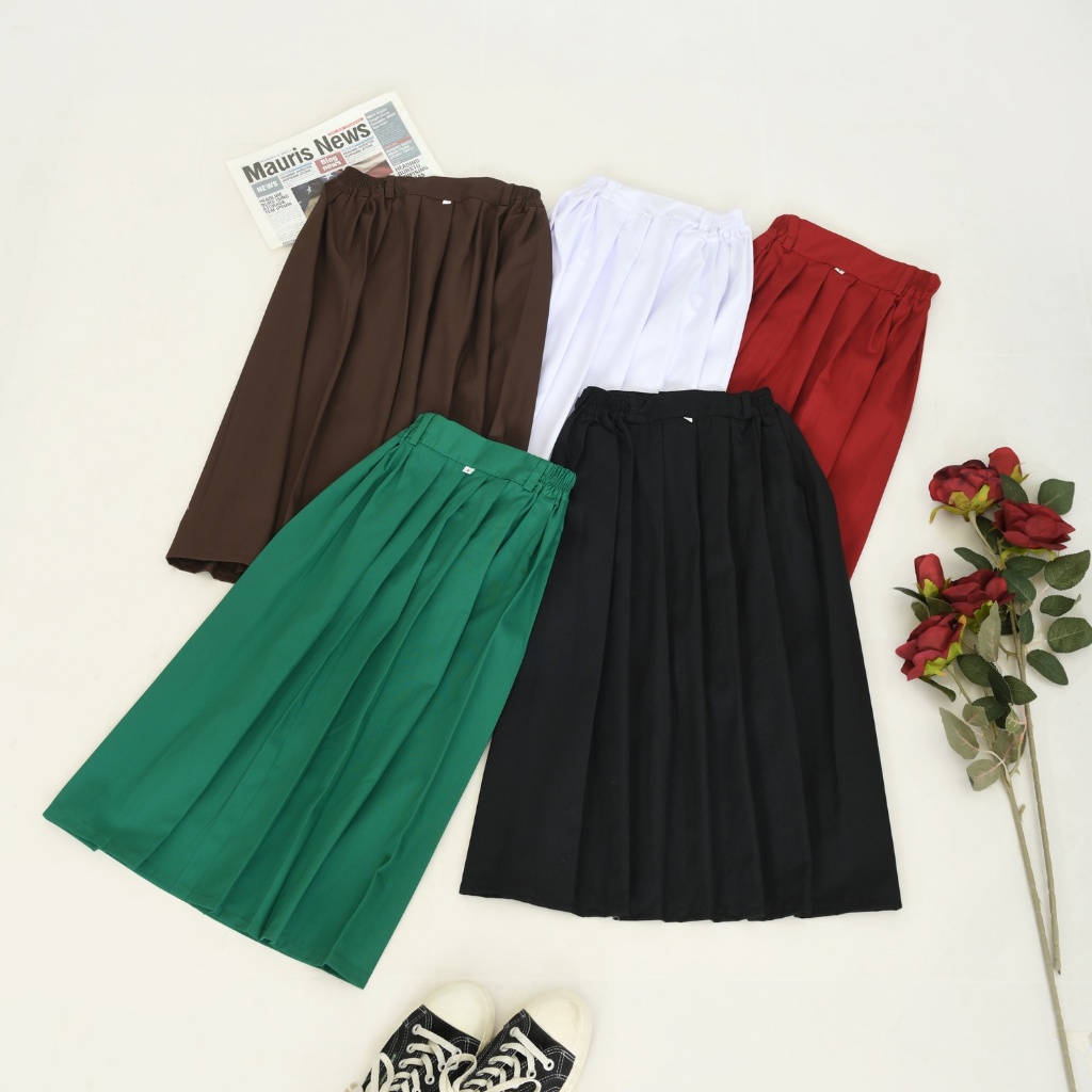 SERAGAM ROK SEKOLAH TK SD SMP SMA REMPEL PANJANG WARNA HITAM PUTIH PRAMUKA COKLAT MERAH HIJAU