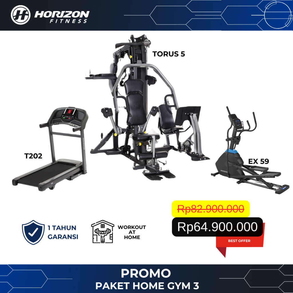 ALAT FITNESS HORIZON FITNESS PAKET HOME GYM 3 - TREADMILL & MULTIGYM
