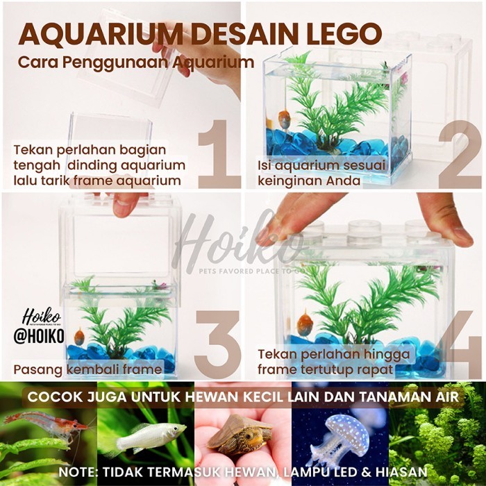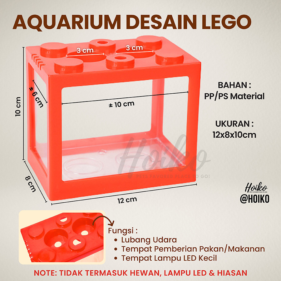 MINI LEGO AKRILIK SOLITER AQUARIUM SUSUN KANDANG AKUARIUM TEMPAT IKAN HIAS KECIL GUPPY CUPANG MOLLY