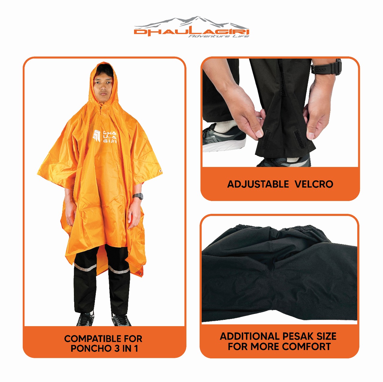 Dhaulagiri Celana Rain Pants Waterproof Berbahan Taslan, Ringan, Bisa dilipat untuk Kegiatan Outdoor/Touring