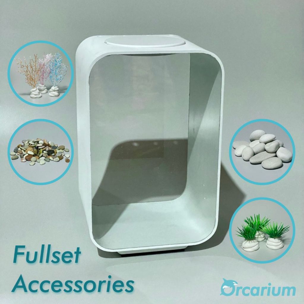 ORCARIUM LOBE SERIES DENGAN LAMPU BIRU, PUTIH, KUNING/AQUARIUM MINIMALIS AESTHETIC/AKUARIUM CUPANG