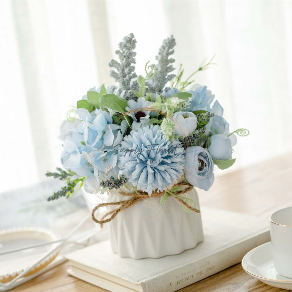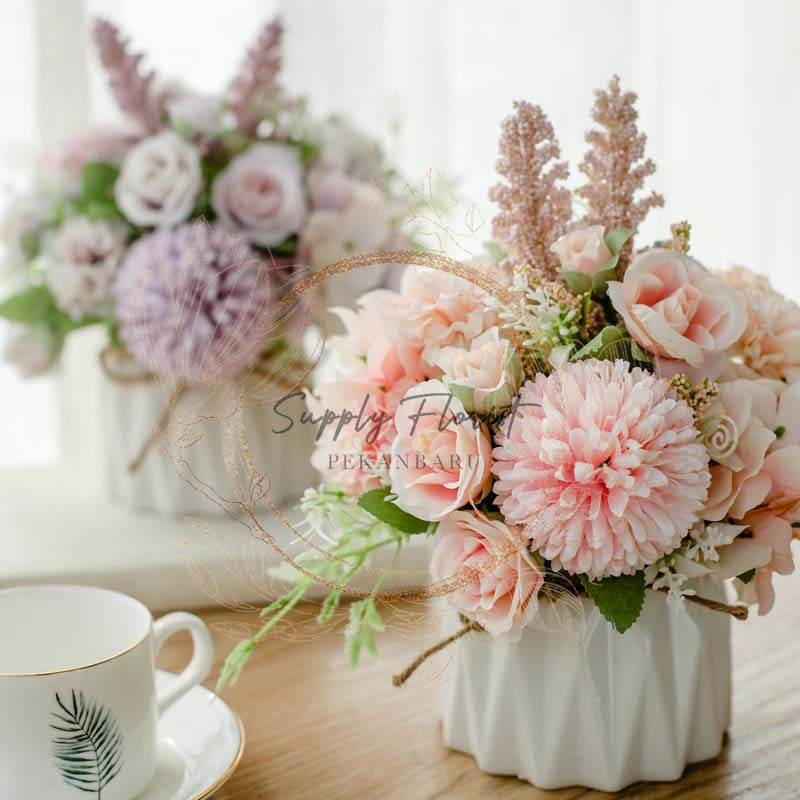SUPPLYFLORIST - VAS BUNGA POM" MIX MAWAR LAVENDER ARTIFICIAL
