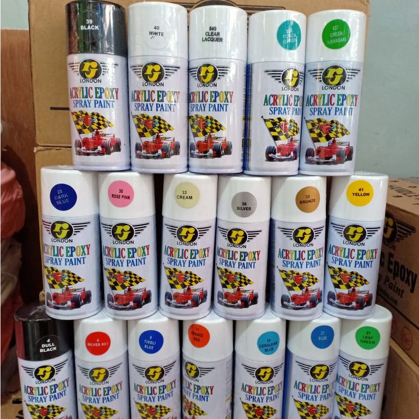 Pylox Pilok Cat Semprot RJ London 150cc Ready Banyak Warna Glossy Metallic Doff Hi-Temp Chrome Gold, Hitam, Putih, Clear, Merah, Hijau Dan Lainnya (150ml/KECIL)