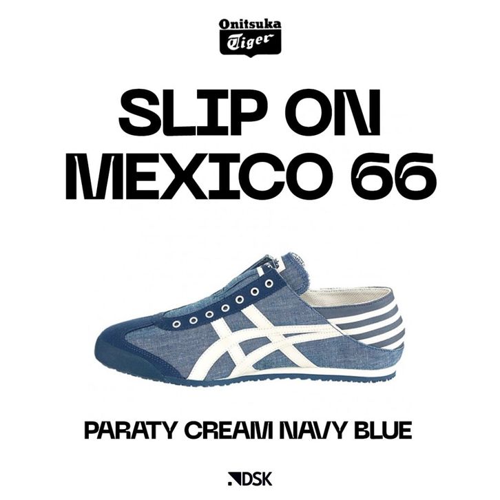 Sepatu Sneakers Onitsuka Tiger Slip on Mexico 66 Paraty Cream Navy Blue Original BNIB