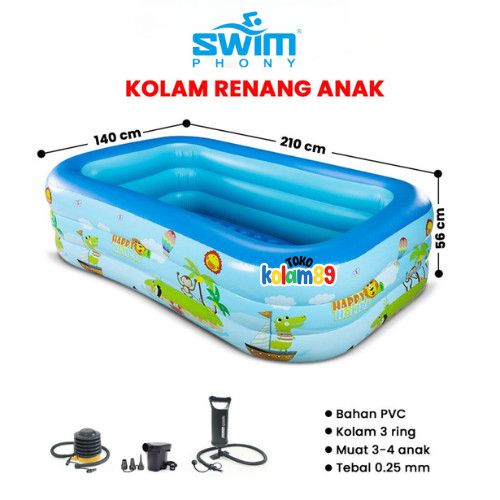 kolam renang anak Tokokolam89 Kolam Renang Anak 210x140x56cm 3 Ring Layer Motif Kolam Renang Bayi Portable Bahan Kuat I