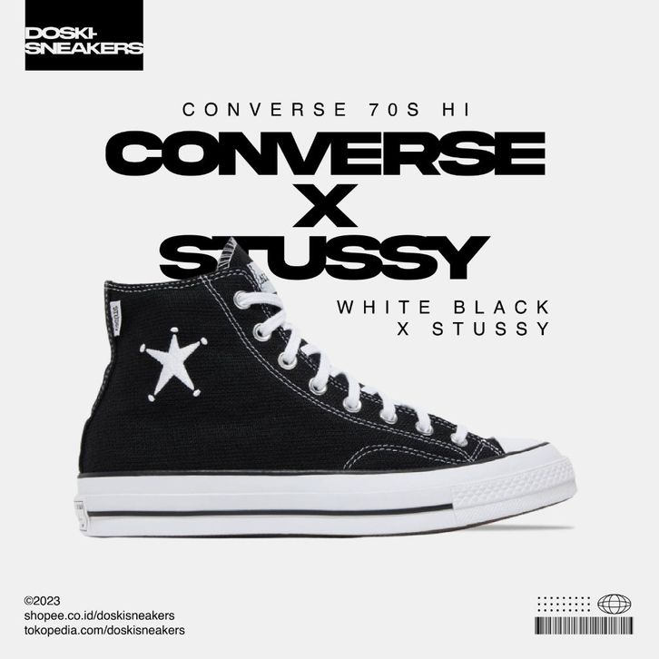 Sepatu Sneakers Converse 70S HI Black White X STUSSY ORIGINAL BNIB