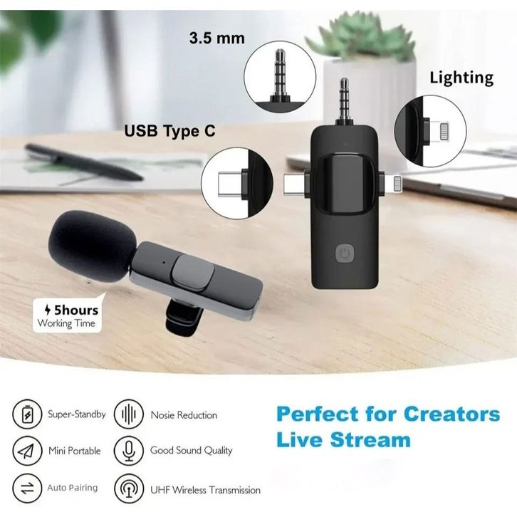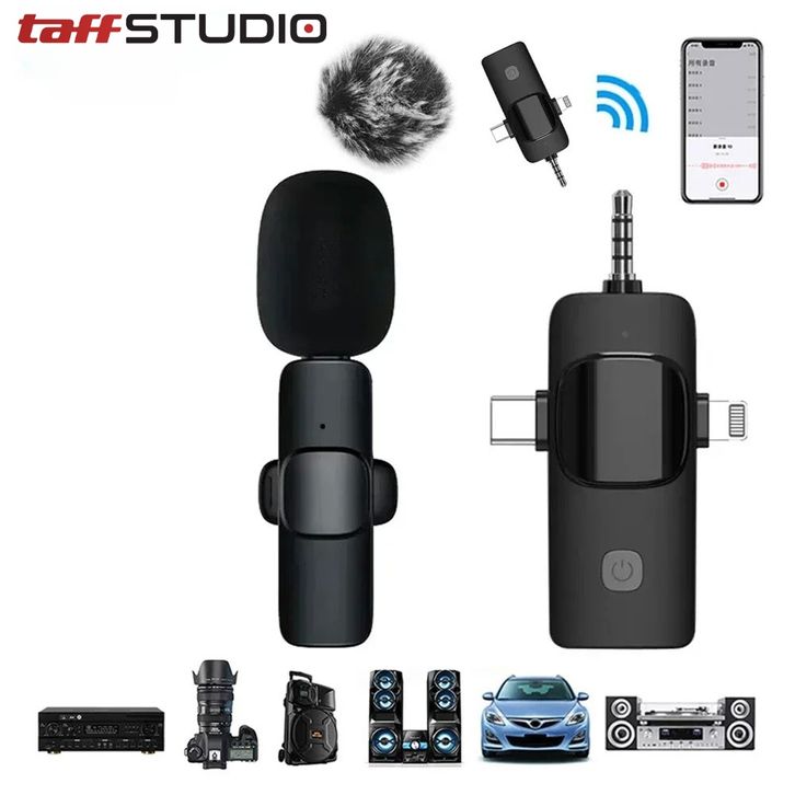 Microphone TaffSTUDIO UHF Wireless Lavalier Microphone Vlogger Live 3.5mm 3in1 Microphone - K15