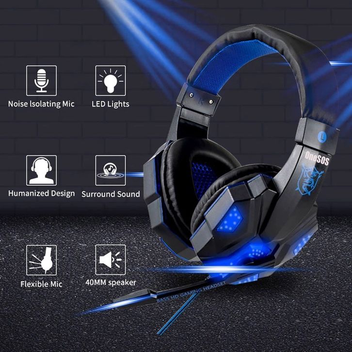 OneSOS Headset Gaming Microphone LED Stereo Bass Gaming Headphone for Computer Laptop - SY830