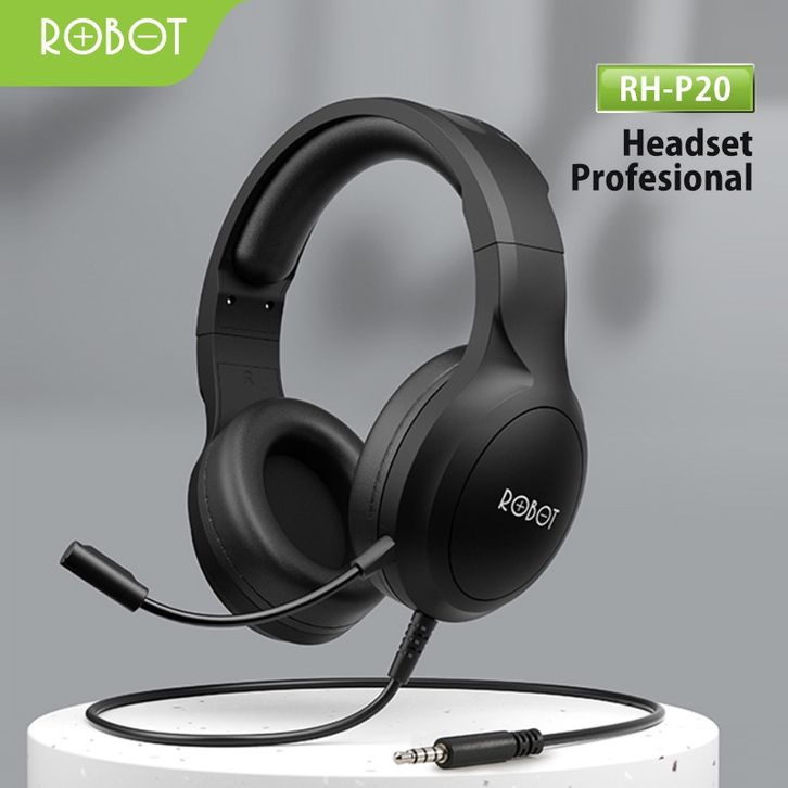 [HWARTZ] HEADSET WIRED ROBOT RH-P20 Jack 3.5mm With Mic Headset Gaming Black Original - Garansi 1